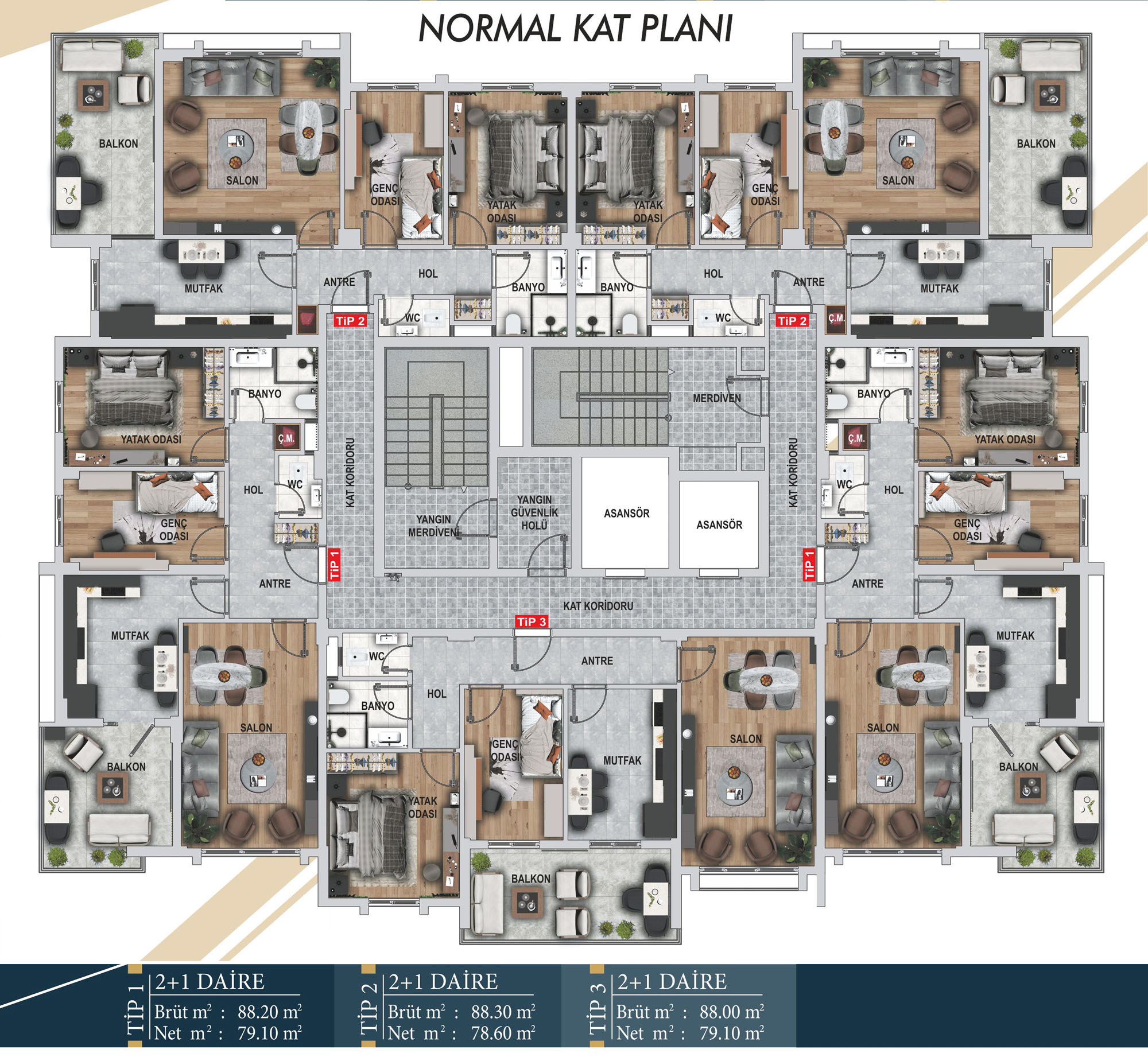 Paradise Rezidans, sadece 2+1 dairelerle sınırlı değil. Projemizdeki alternatifler arasında Keçiören'de satılık 3+1 daire ve hatta Keçiören'de satılık 4+1 daire seçenekleri de bulunuyor. Bu geniş daire tipleri sayesinde, hem çekirdek aileler hem de kalabalık aileler için ideal yaşam alanları sunuyoruz. Bu çeşitlilik, projemizi Keçiören emlak piyasasında değerli bir yatırım aracı haline getiriyor. Keçiören'de uygun fiyatlı daireler arayanlar için kaçırılmayacak bu fırsat, aynı zamanda Keçiören'de lüks daireler kategorisinde de öne çıkıyor.
